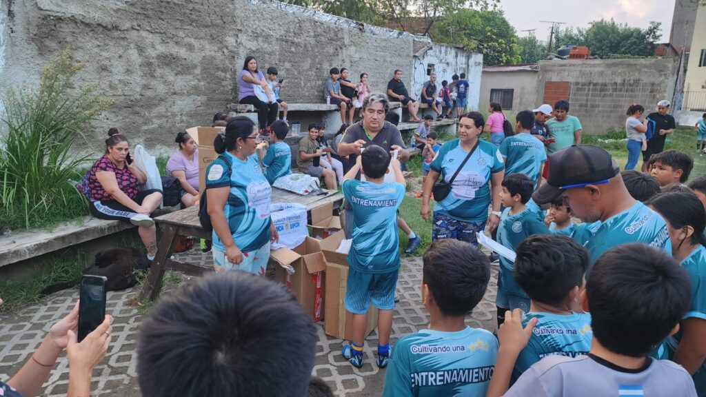 La actividad comenzó en la Escuela de Fútbol Saldías, situada en el corazón del barrio Saldías (comuna 2), donde los miembros de la agrupación organizaron una merienda para los niños y jóvenes deportistas. Pero no solo se trató de compartir alimentos; también se realizó una entrega de útiles escolares, asegurando que los niños y adolescentes tengan las herramientas necesarias para su educación y desarrollo personal.